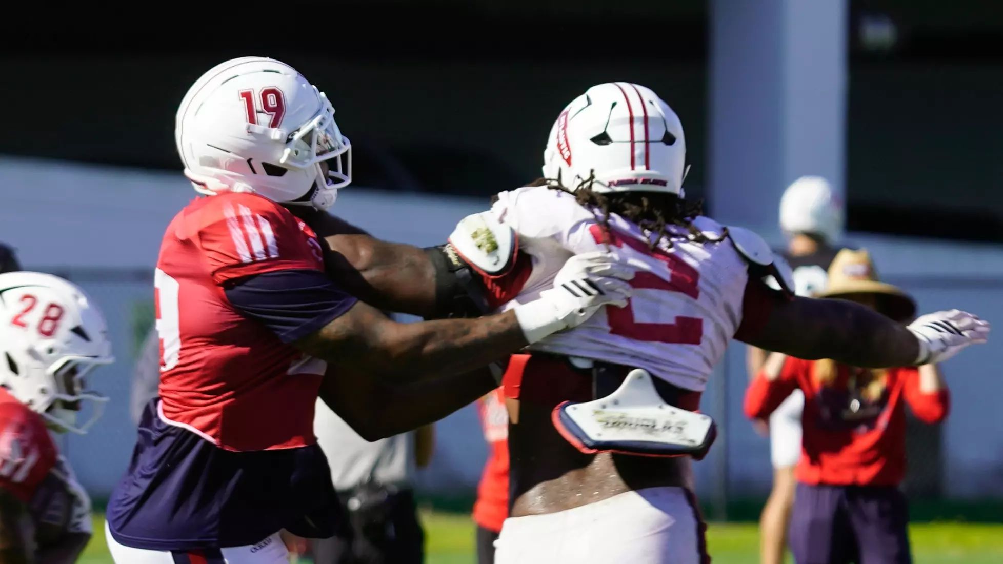 🔼 Strap ‘Em Up. FAU Hagerty Family Head Football Coach Zach Kittley put the Owls through their Tuesday morning paces, which included team and live periods.